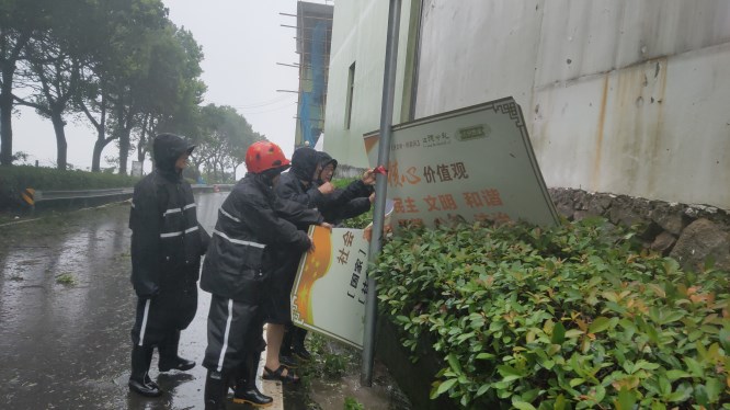 岑立山坚守慈溪第一高山村岗墩村,积极参与危险排查、人员转移等抗台支援行动。