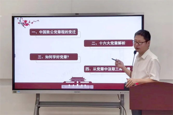 郑甬龙副主委作了题为《学习党章 继承传统 在奋进新征程的道路上贡献致公力量》的学习讲座。从党章的变迁、十六大党章的解析、如何学好党章和从党章中汲取力量等方面做了讲解。 市委会专职副主委方巨成介绍了市委会“同心同廉”工程工作的实施方案,并进行了集体廉政教育讲话。